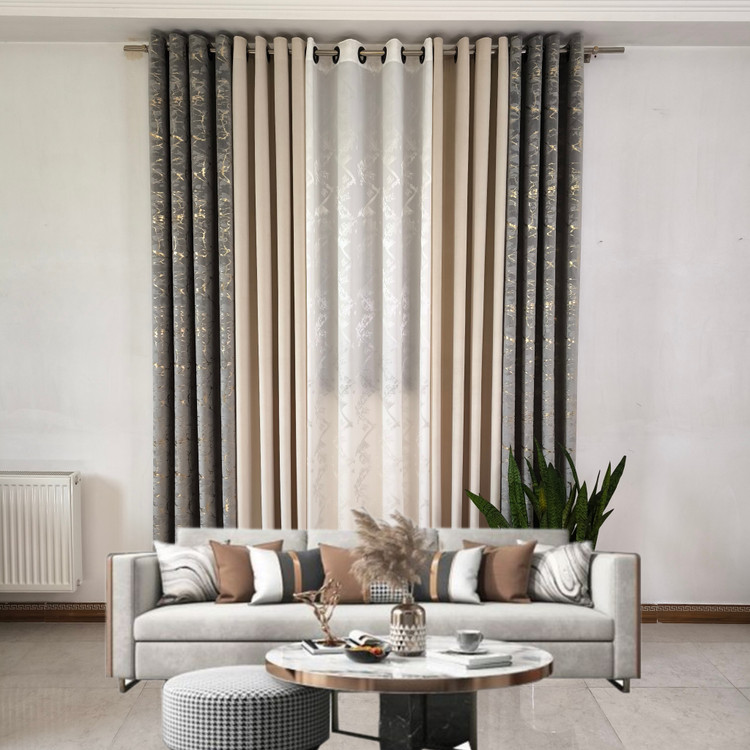 این پک شامل ۵ تیکه پرده آماده پانچی ۲ تکه مخمل طلاکوب ۲ تکه مخمل کالیفرنیا و یک تکه کرپ محو ابری